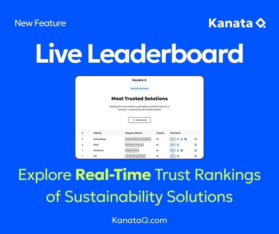 We’re excited to announce the launch of KanataQ Live Leaderboard, the first real-time trust ranking system for sustainability solution providers.
